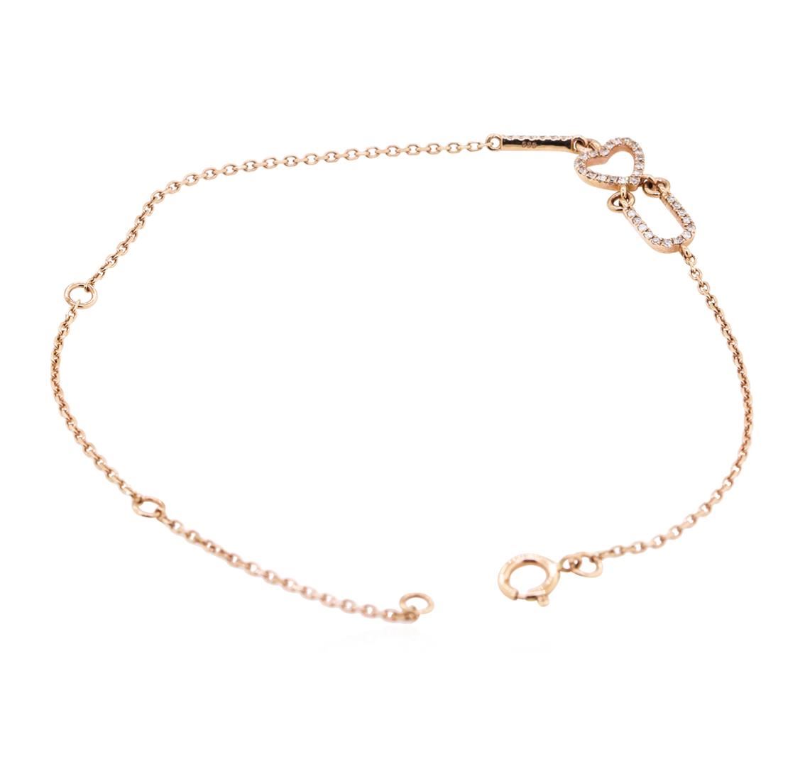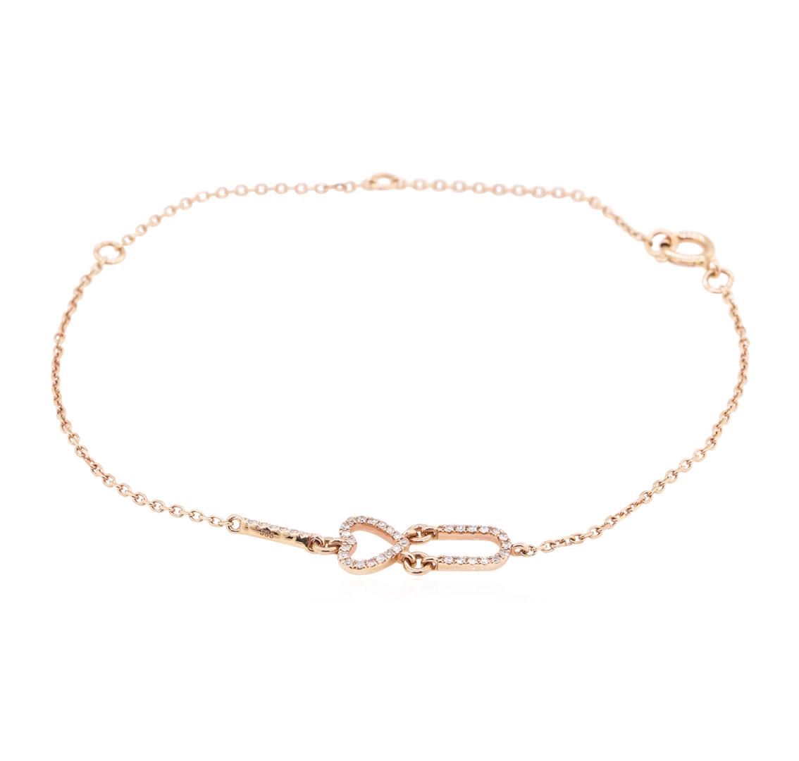 One "I Love You" bracelet featuring: 14KT rose gold weighing 1.1 grams containing diamonds weighing 0.15ctw. The bracelet can be worn between five and seven inches in length.