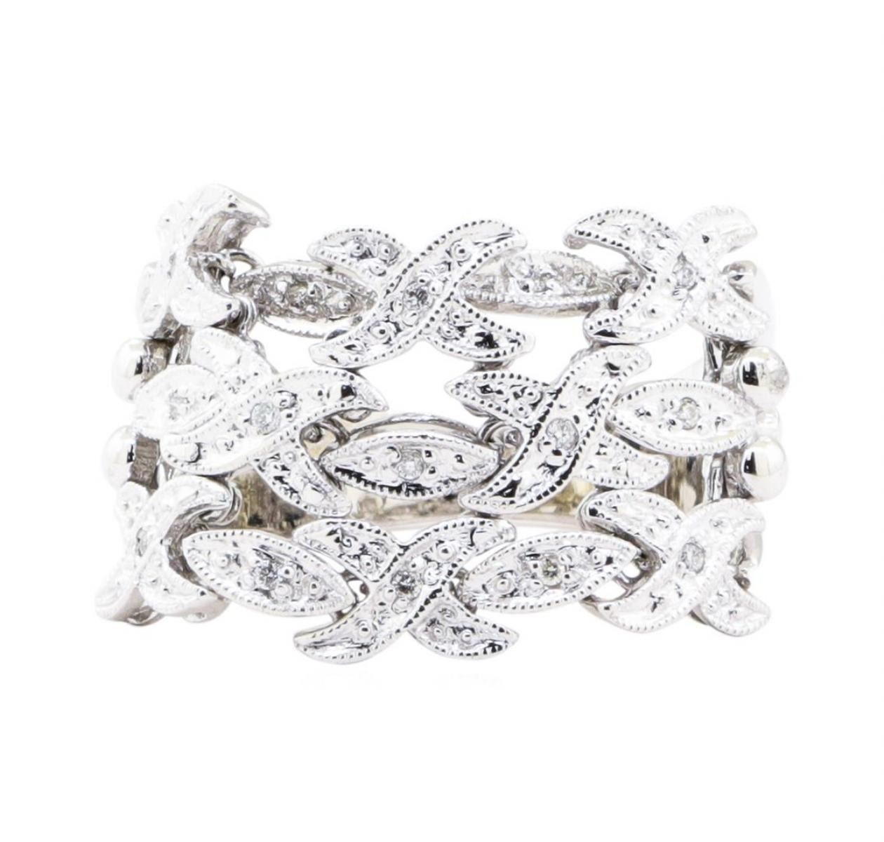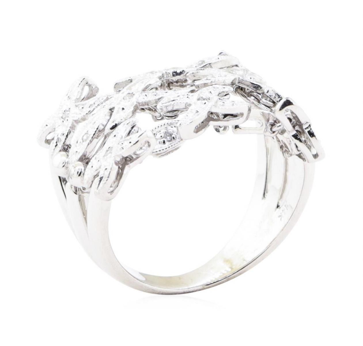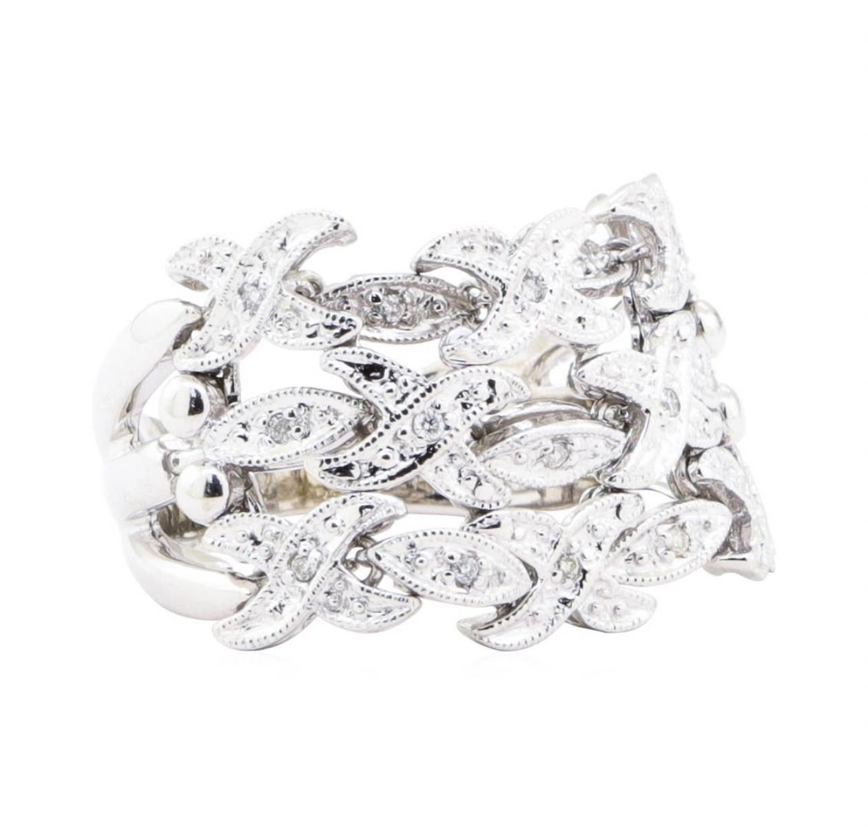 One mesh ring featuring: 14KT white gold weighing 6.1 grams containing diamonds weighing 0.15ctw.