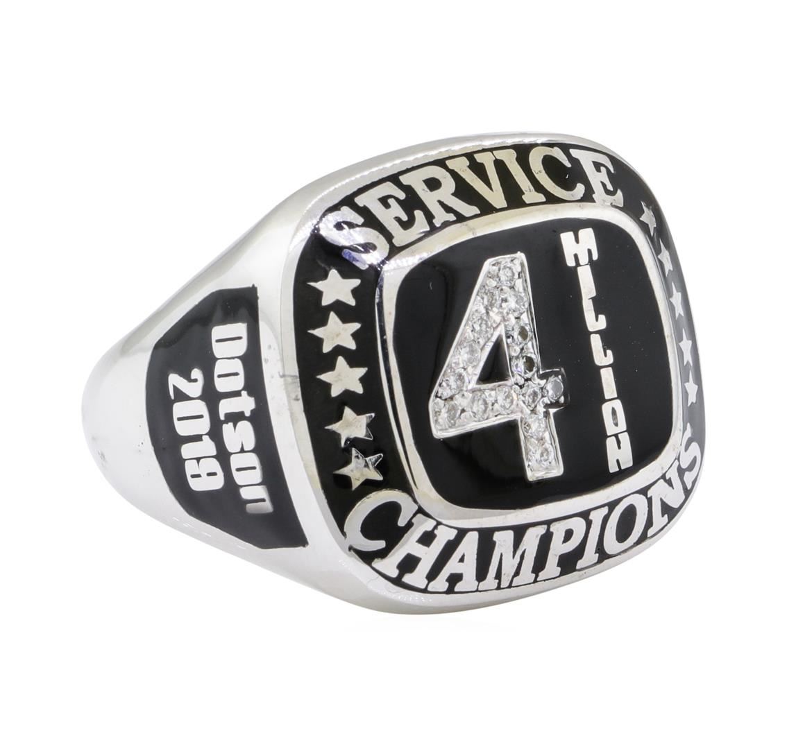 One ring featuring: 14KT white gold weighing 27.8 grams containing diamonds weighing 0.15ctw. The ring is a Service Champions award ring.
