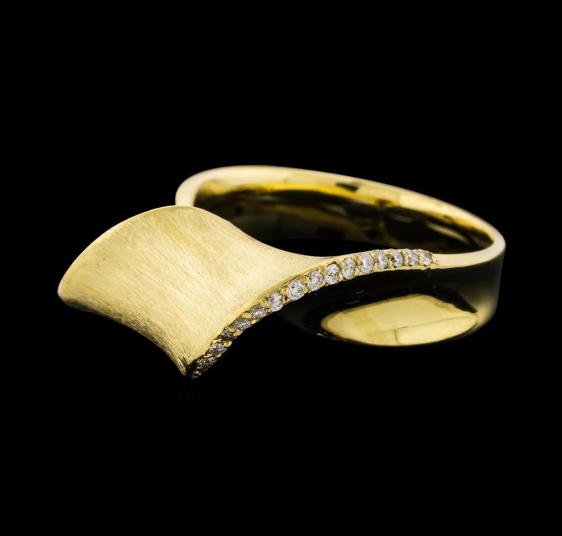One Diamond Ring featuring: 14KT Yellow Gold with a total weight of 5.96 grams and 21 Diamonds with a total weight of 0.15ctw.