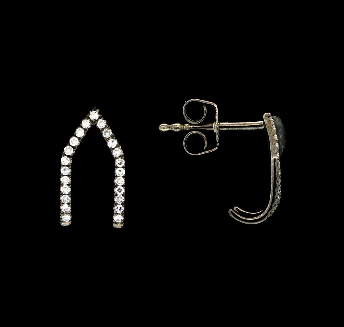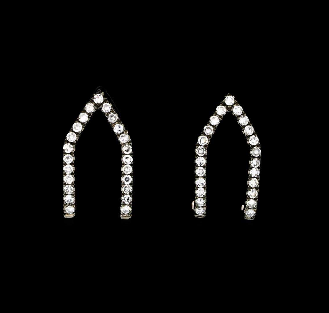 One pair of v-shaped earrings featuring: 14KT white gold weighing 1.31 grams containing diamonds weighing 0.15ctw.