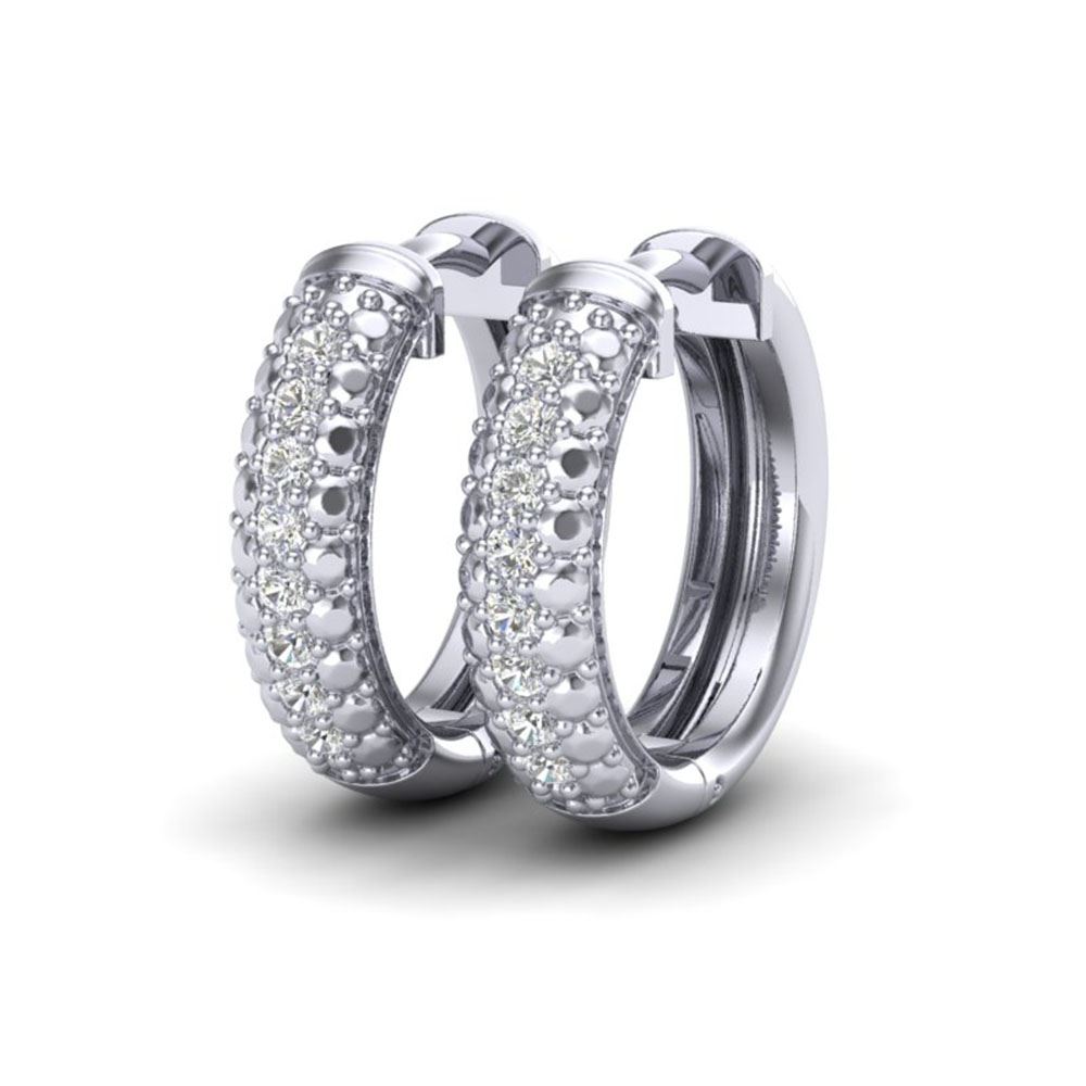 REF-19W5H - SKU: 22484 ---- 0.15 ctw Micro Pave Hoop VS/SI Diamond Certified Earrings 10k White Gold
