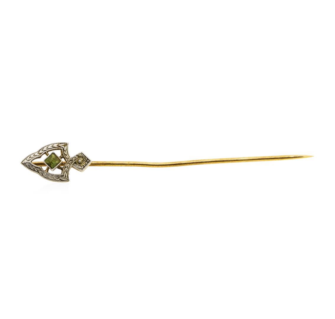 One stick pin featuring: 14KT yellow and white gold weighing 1.7 grams containing one peridot weighing 0.15ct.