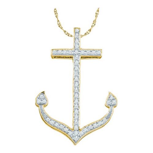 REF-24Y2Z ---- 0.15CT Diamond Anchor 10KT Pendant Yellow Gold - SKU: 49965