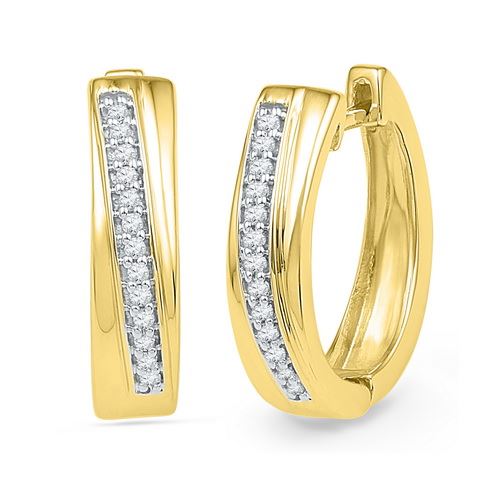 REF-35V9Y ----  0.15CT Diamond Hoops 10KT Earrings Yellow Gold - SKU: 101970