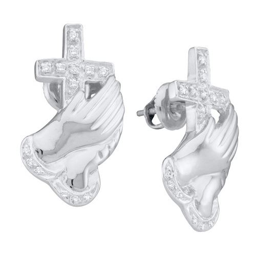 REF-19R9K ---- 0.15CT Diamond Praying Hand 10KT Earrings White Gold - SKU: 22892