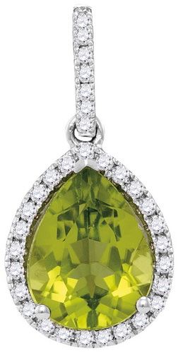 REF-38K9N ---- 0.15CT Diamond and 1.30 Peridot Anniversary 14KT Pendant White Gold - SKU: GD 105042