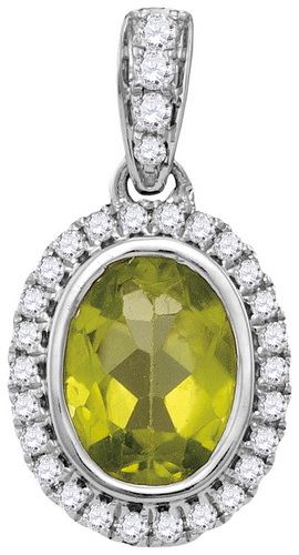 REF-38K9N ---- 0.15CT Diamond and 1CT Peridot Anniversary 14KT Pendant White Gold - SKU: GD 105098