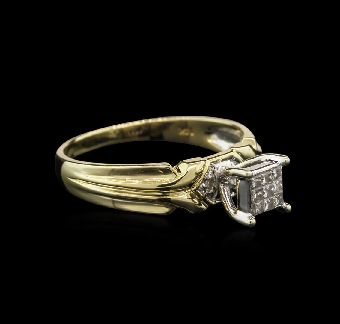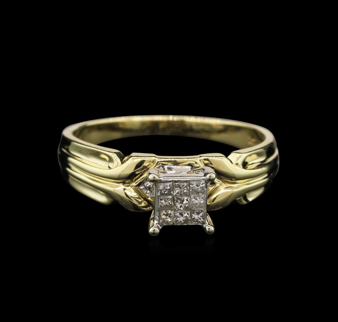 One ring featuring: 14KT yellow and white gold weighing 3.20 grams containing invisible set princess cut and prong set round diamonds with a total weight of 0.15ct.