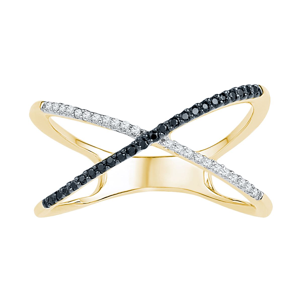 REF-24H2X ---- 0.16 CTW Black Colored Diamond Crossover Band 10K Yellow Gold - SKU: GD108786