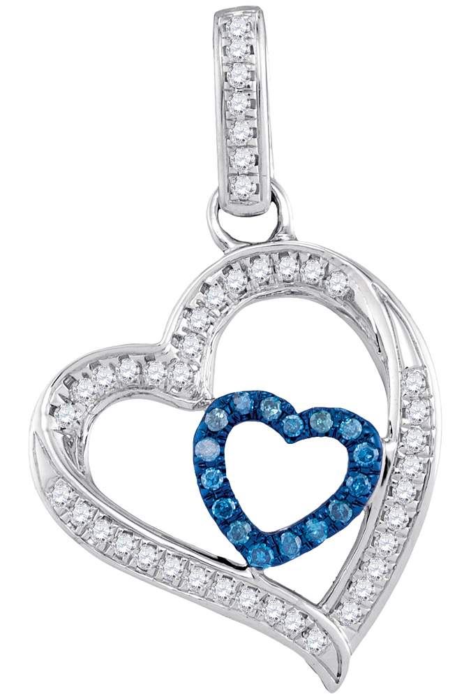 REF-18W2K- SKU: GD98508 ---- 0.16 CTW Blue Color Diamond Nested Heart Pendant 10KT White Gold