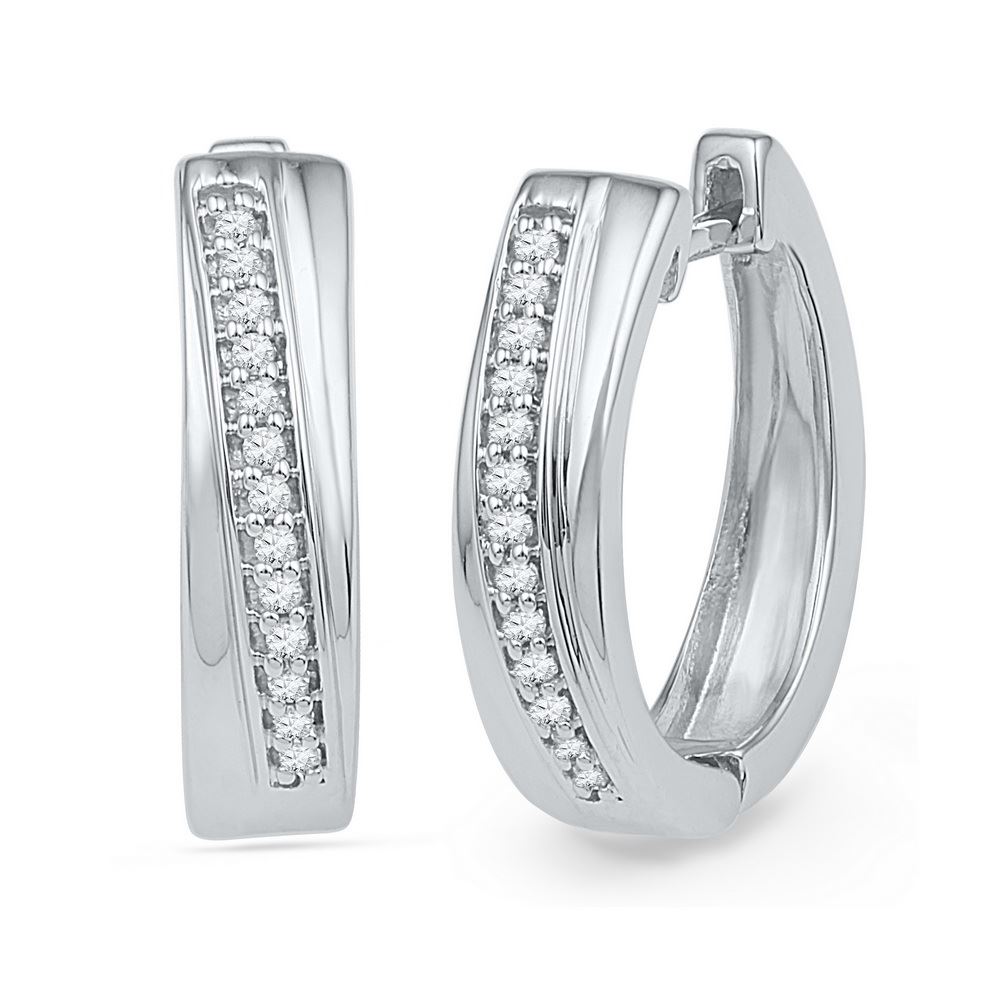 REF-30M2H- SKU: GD101971 ---- 0.16 CTW Diamond Single Row Hoop Earrings 10KT White Gold