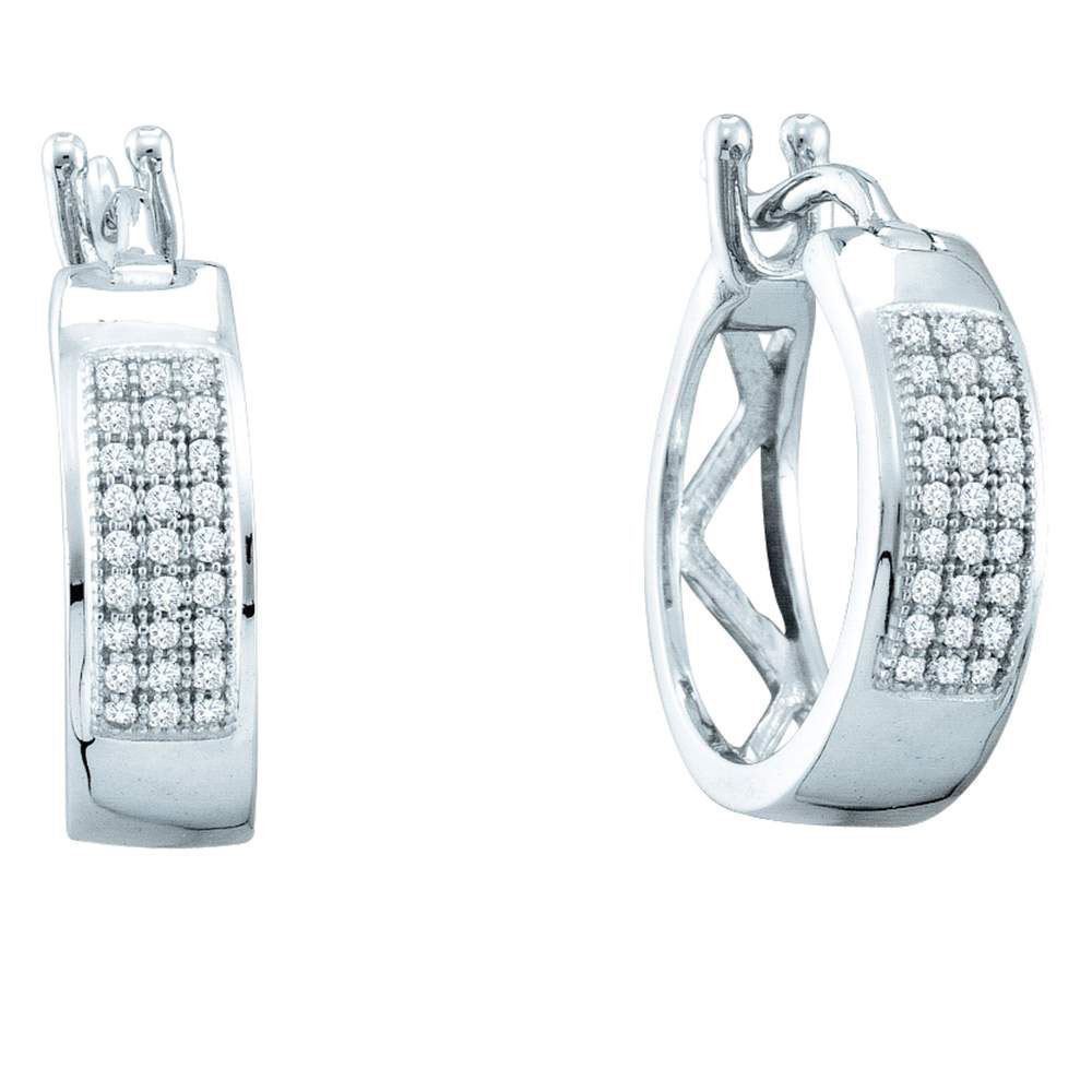 REF-22W4K- SKU: GD51314 ---- 0.16 CTW Diamond Triple Row Hoop Earrings 10KT White Gold
