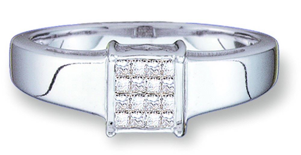REF-43N9Y ---- 0.16 CTW Mens Princess Natural Diamond Square Cluster Ring 14K White Gold - SKU: GD15179