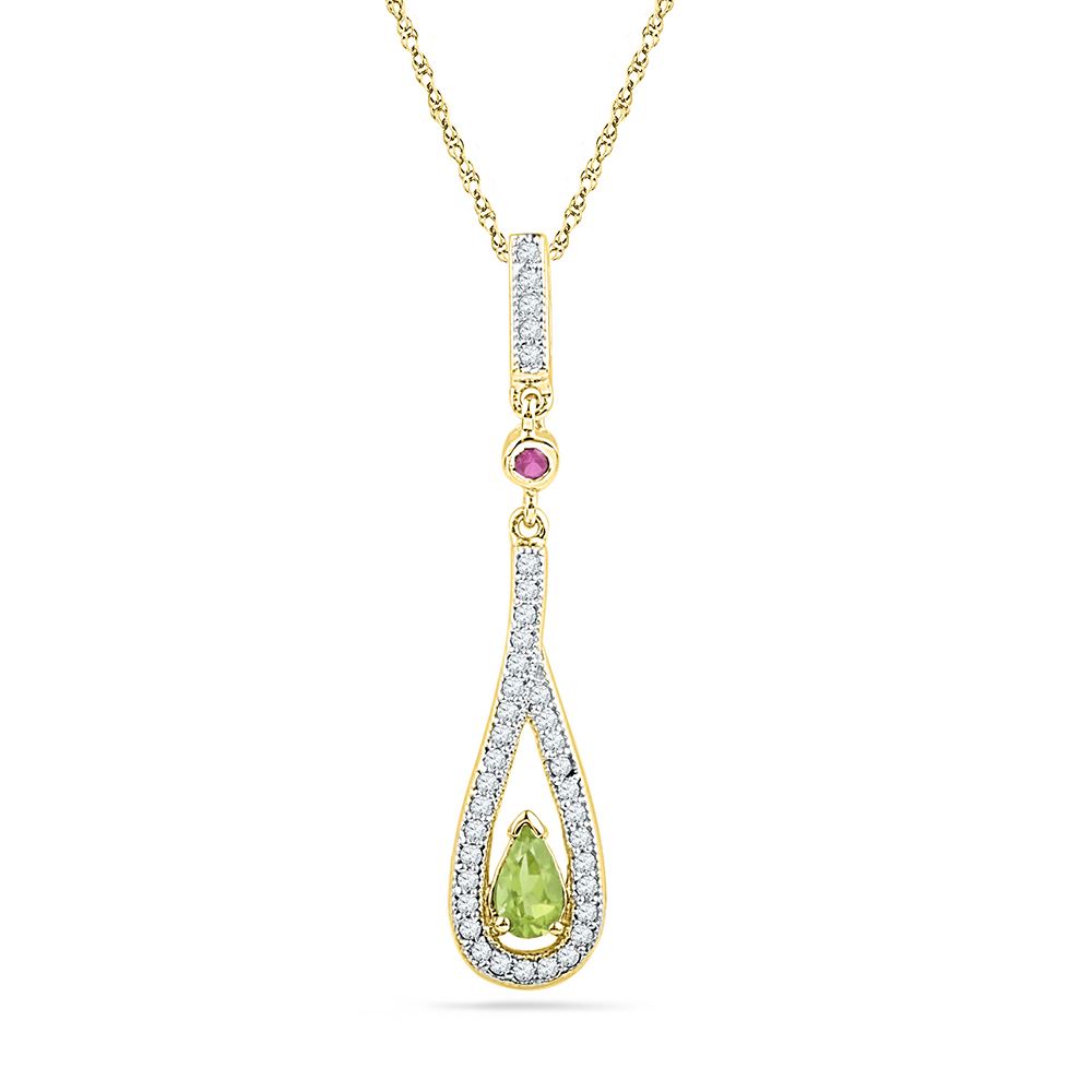 REF-14H9M- SKU: GD101298 ---- 0.16 CTW Pear Created Green Peridot Solitaire Teardrop Pendant 10KT Yellow Gold