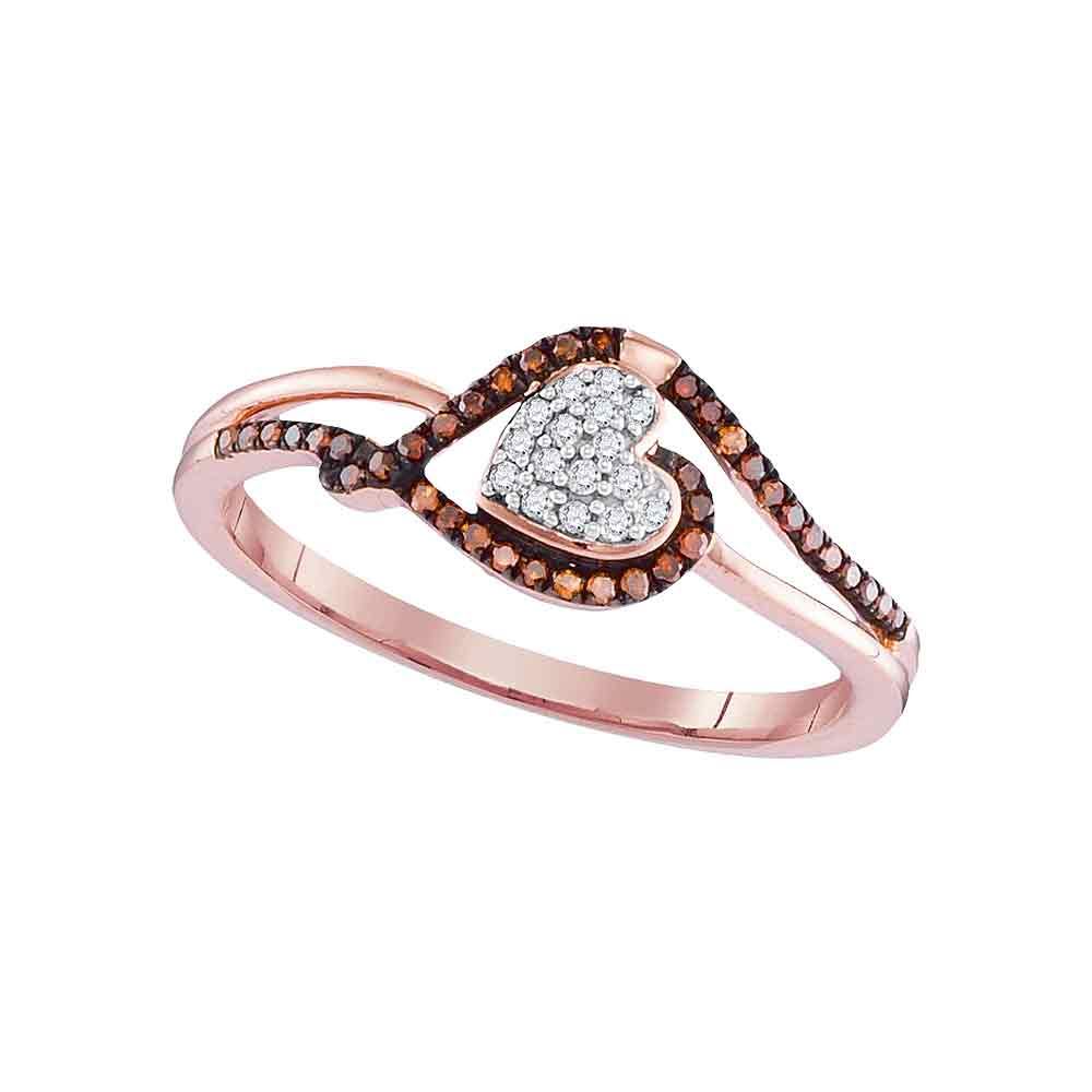 REF-18N2F- SKU: GD98549 ---- 0.16 CTW Red Color Diamond Heart Cluster Ring 10KT Rose Gold
