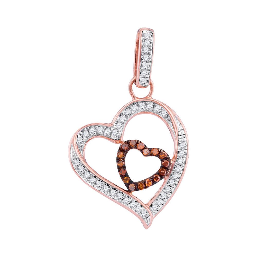REF-16K4W- SKU: GD97964 ---- 0.16 CTW Red Color Diamond Nested Double Heart Pendant 10KT Rose Gold