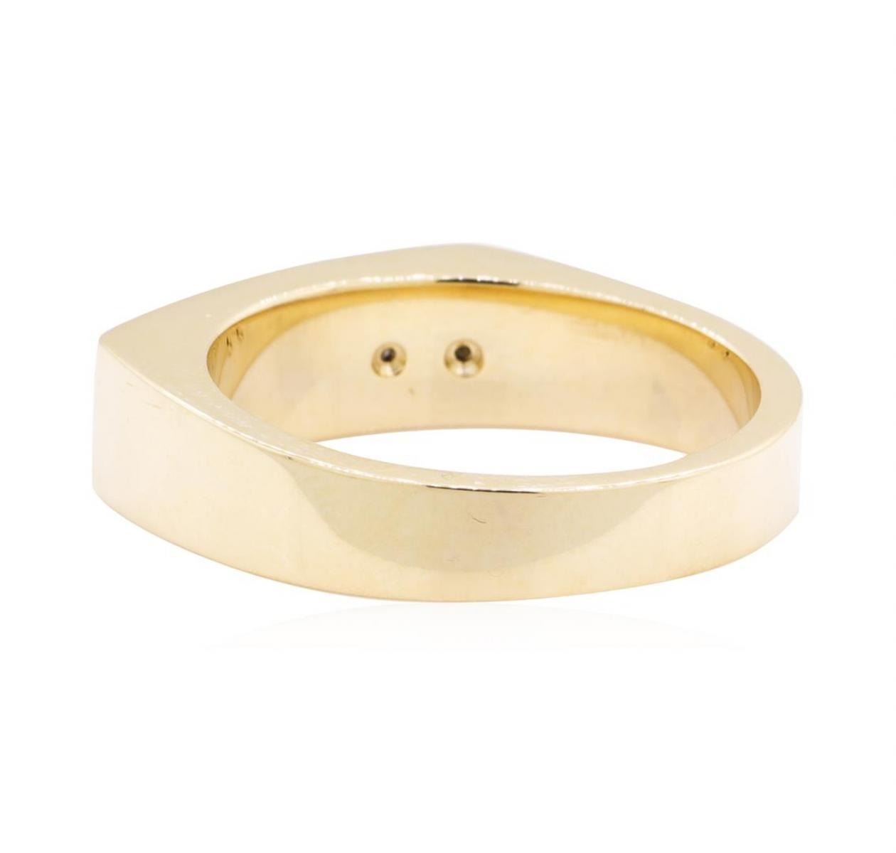 One men's ring featuring: 14KT yellow gold weighing 10.5 grams containing one piece of inlaid black onyx and diamonds weighing 0.16ctw.