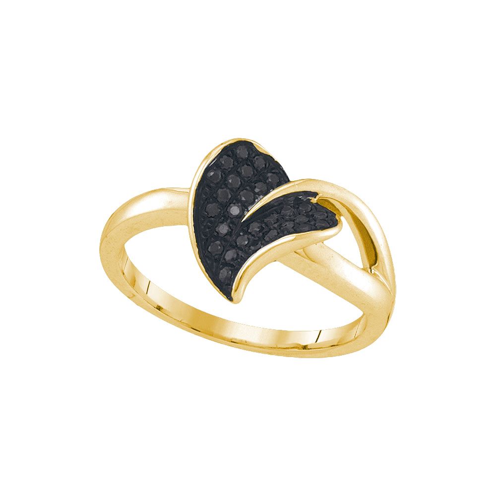 REF-29M9A ---- 0.17 CTW Black Colored Diamond Leaf Cluster Ring 10K Yellow Gold - SKU: GD90120