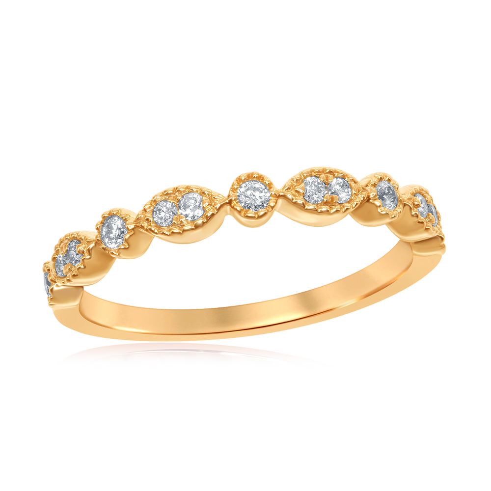REF-24M2H- SKU: GD117543 ---- 0.17 CTW Diamond Milgrain Stackable Ring 14KT Yellow Gold