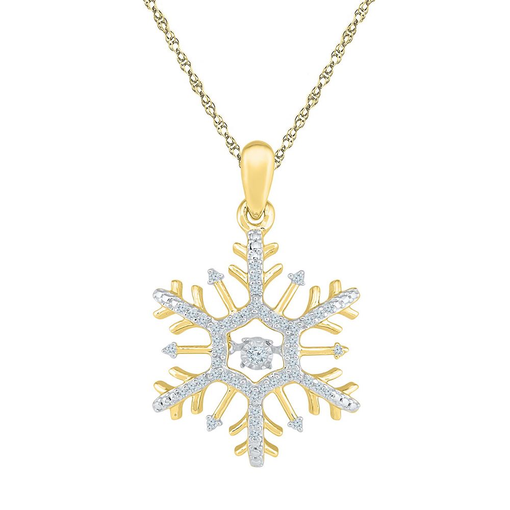 REF-19X4Y- SKU: GD111383 ---- 0.17 CTW Diamond Snowflake Winter Cluster Pendant 10KT Yellow Gold