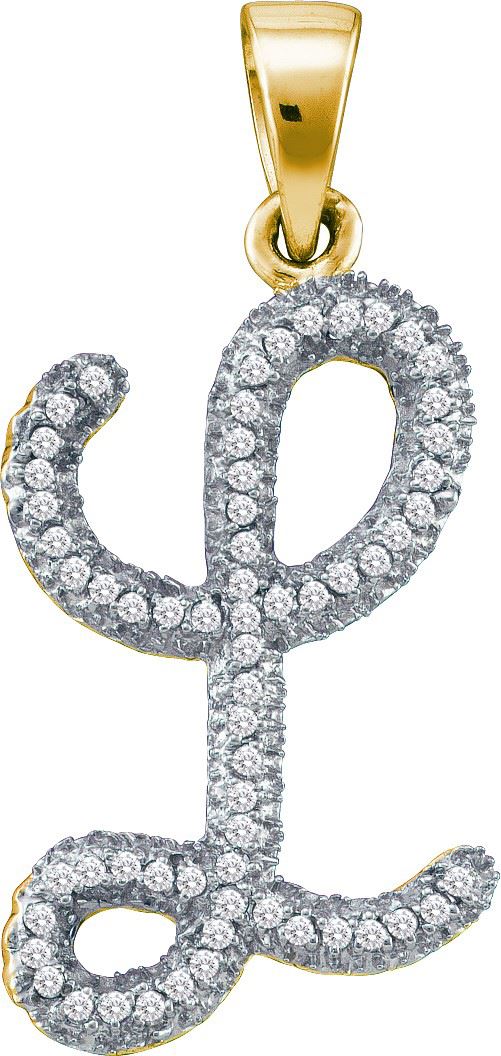 REF-17A9N ---- 0.17 CTW Natural Diamond Cursive Letter L Pendant 10K Yellow Gold - SKU: GD49794