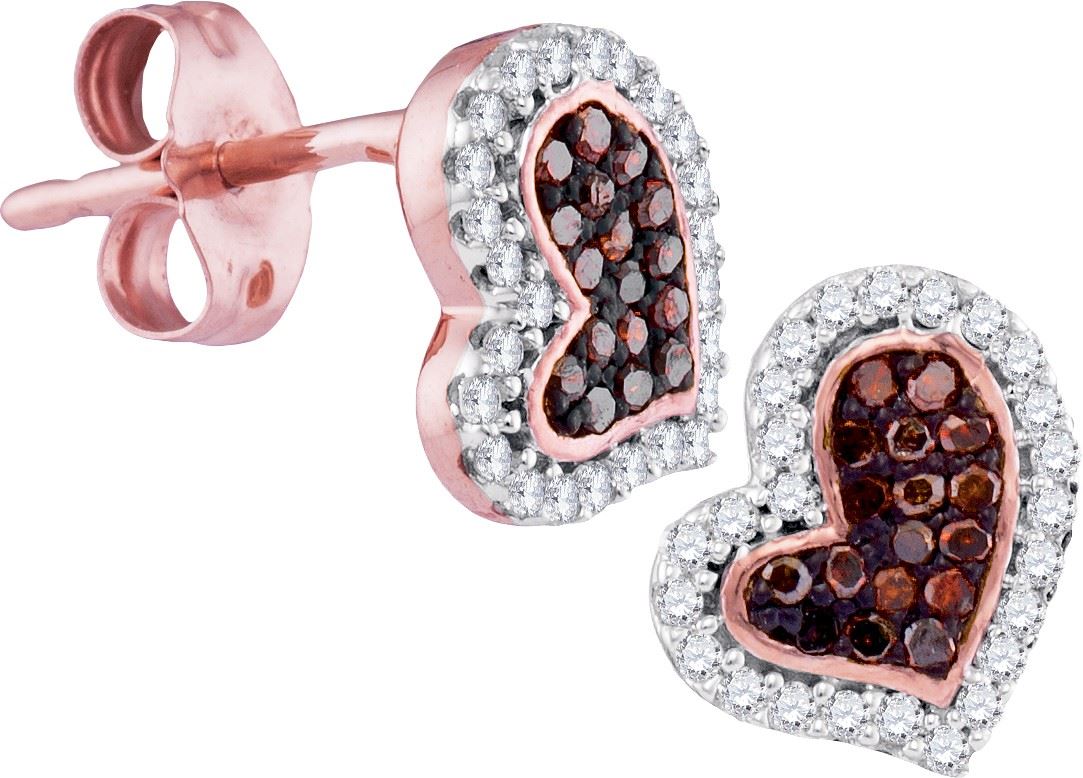 REF-19Y4X- SKU: GD97622 ---- 0.17 CTW Red Color Diamond Heart Stud Screwback Earrings 10KT Rose Gold