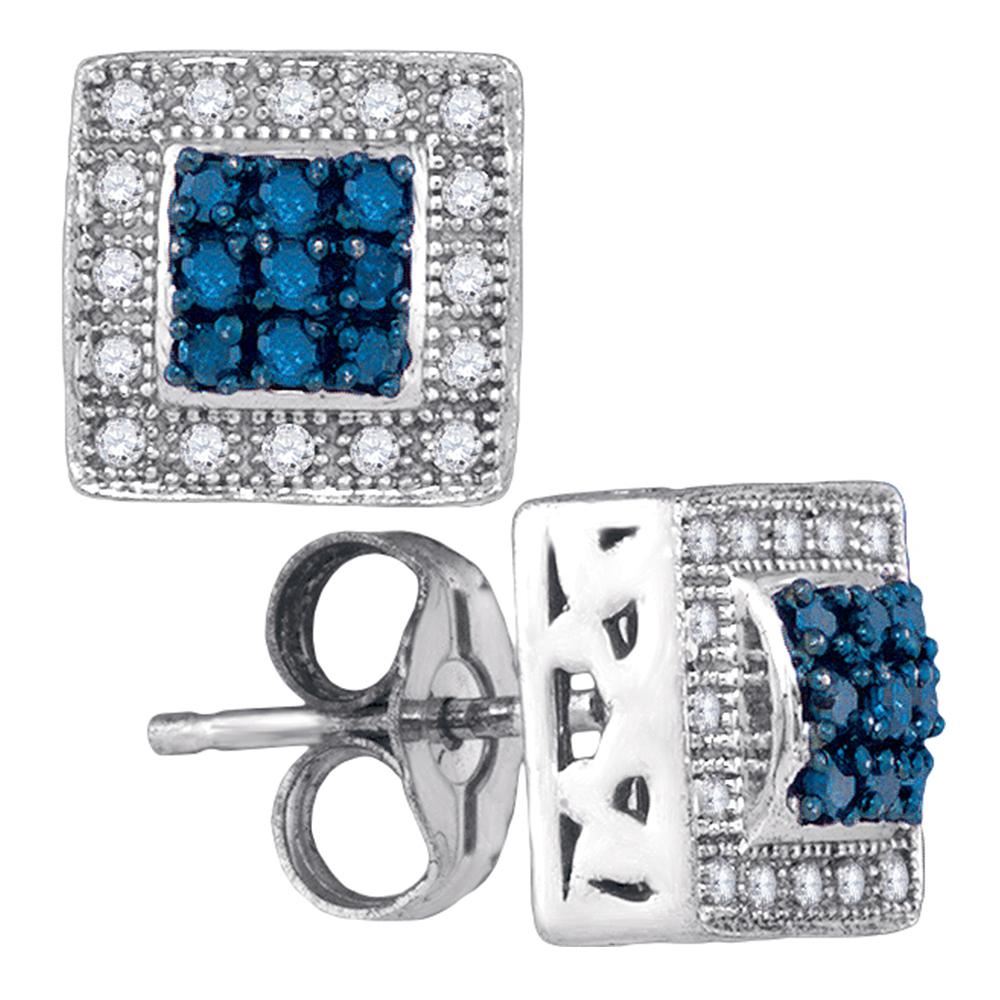 REF-24N2F- SKU: GD85819 ---- 0.18 CTW Blue Color Diamond Square Cluster Stud Earrings 10KT White Gold