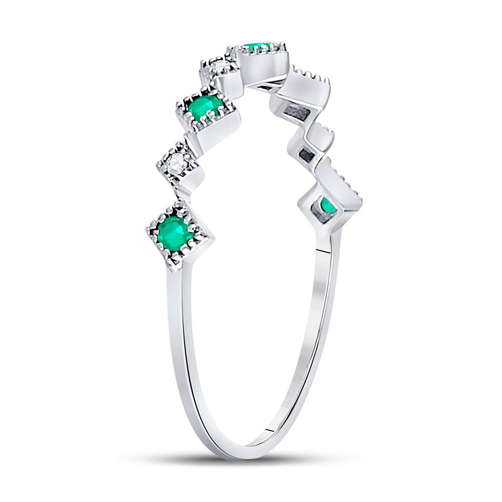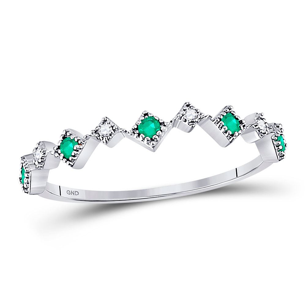 10kt White Gold Womens Round Emerald Diamond Square Stackable Band Ring 1/5 Cttw