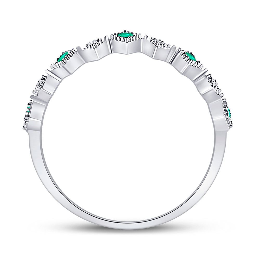 10kt White Gold Womens Round Emerald Diamond Square Stackable Band Ring 1/5 Cttw