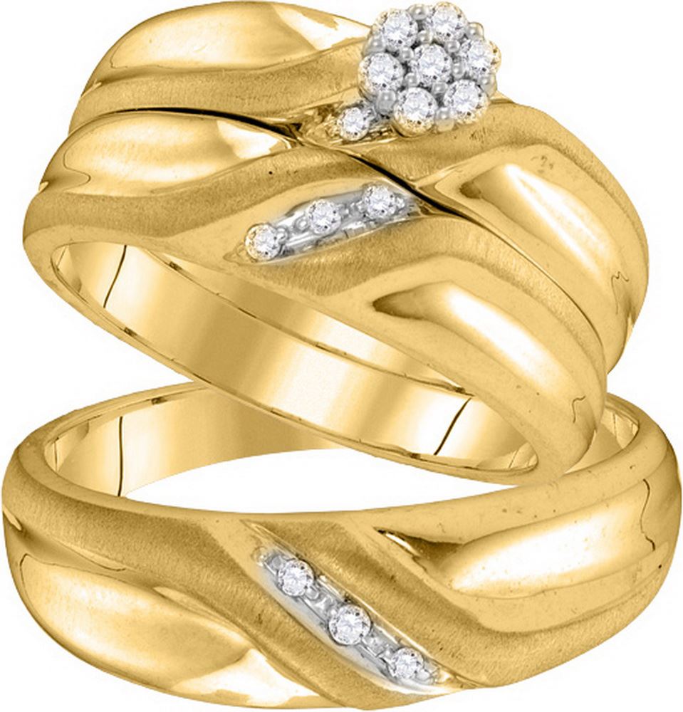 REF-55F9M ---- 0.18 CTW His & Hers Natural Diamond Cluster Matching Bridal Ring 10K Yellow Gold - SKU: GD105908