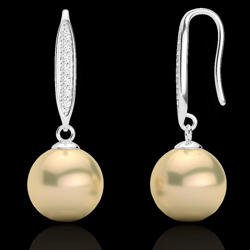 0.18 CTW Micro Pave VS/SI Diamonden Pearl Designer Earrings 18K White Gold ---- Luxury Designer Brand Earring Appraised Retail Price at $2,450 ---- SKU Number US22632 18k White gold Earring Size is 1 Inches, Earring measuring approx. 1 " x 9 mm , weighing in total approx. 2.2 grams. Made in the USA and is stamped 18k, Main stone 1.50 carat total weight containing 2 pieces of High Luster color with AAA quality Golden shape cut Pearl , Stone #2 0.18 carat total weight containing 14 pieces of H-I color with VS/SI quality Round shape cut