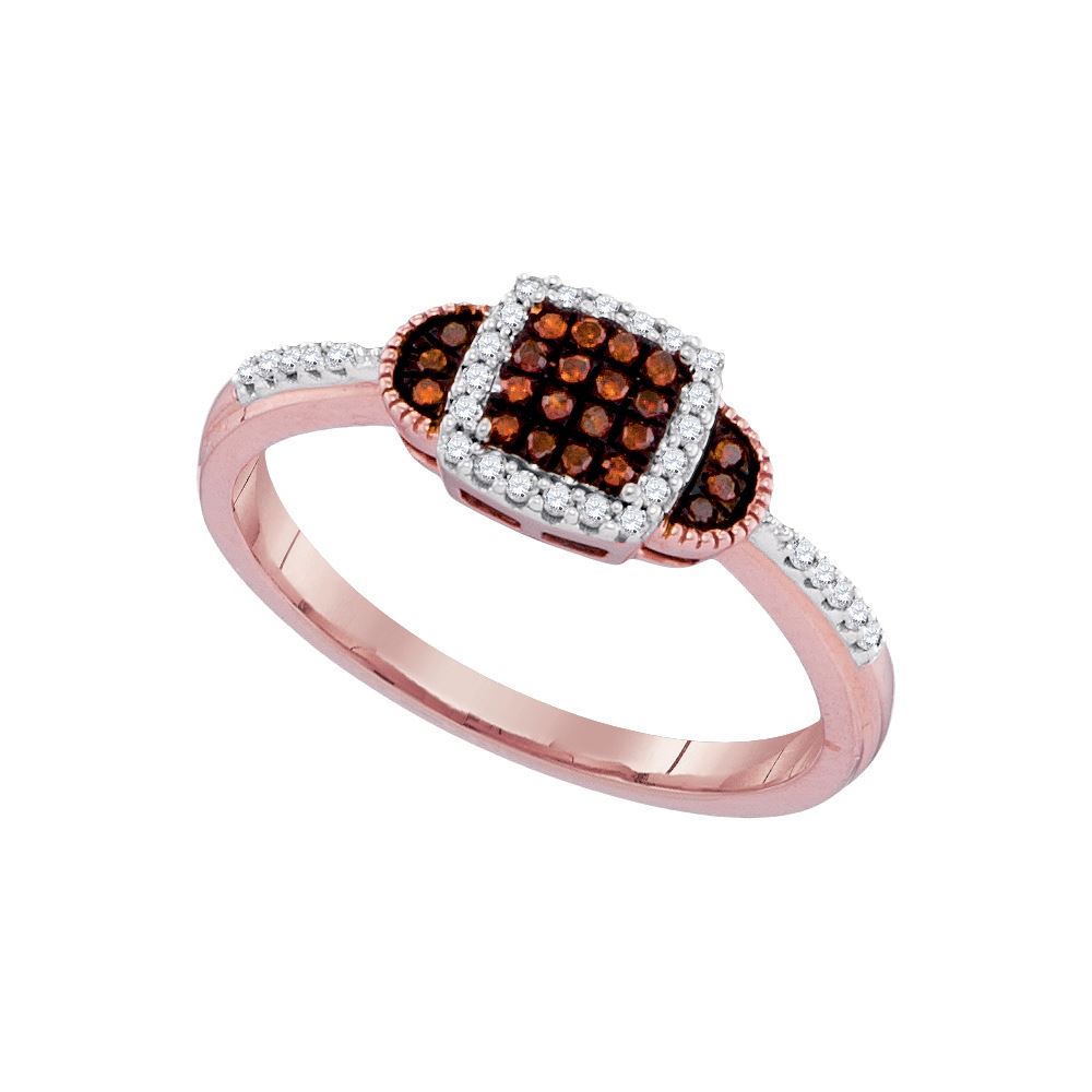 REF-29F9M ---- 0.18 CTW Red Colored Diamond Square Cluster Ring 10K Rose Gold - SKU: GD97584