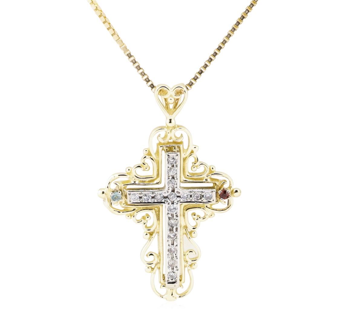 0.18 ctw Diamond Cross Pendant with Chain - 14KT Yellow and White Gold