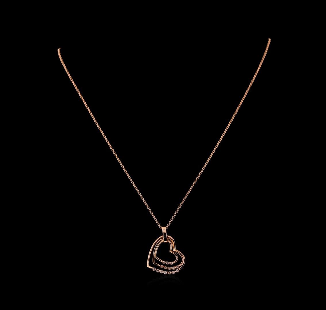 One pendant with chain : 14KT rose gold weighing 3.57gm containing diamonds with a total weight of 0.18ctw.