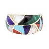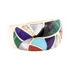One electronically tested 14KT yellow gold lady's cast fashion ring with a wide band dome with a bright polish finish. The featured lady's ring has inlaid pieces of mother of pearl, lapis lazuli, malachite, onyx, turquoise and carnelian, and a shank measuring 4.0 millimeters wide. Trademark is ASH. Identified with markings of '14K'. Condition is new, good workmanship. Containing: Six channel set round brilliant cut diamonds, measuring 2.00 - 1.30 x 1.02mm (depth est.) approximate total weight of 6 Stones = 0.18ct. Graded in the setting. Color H - I Clarity SI-1 to SI-2 Cut Good. Total Weight of Diamonds 0.18ct.. Total Weight of Ring 9.30gm GAS Appraised at $2325.00. GAS Appraised.