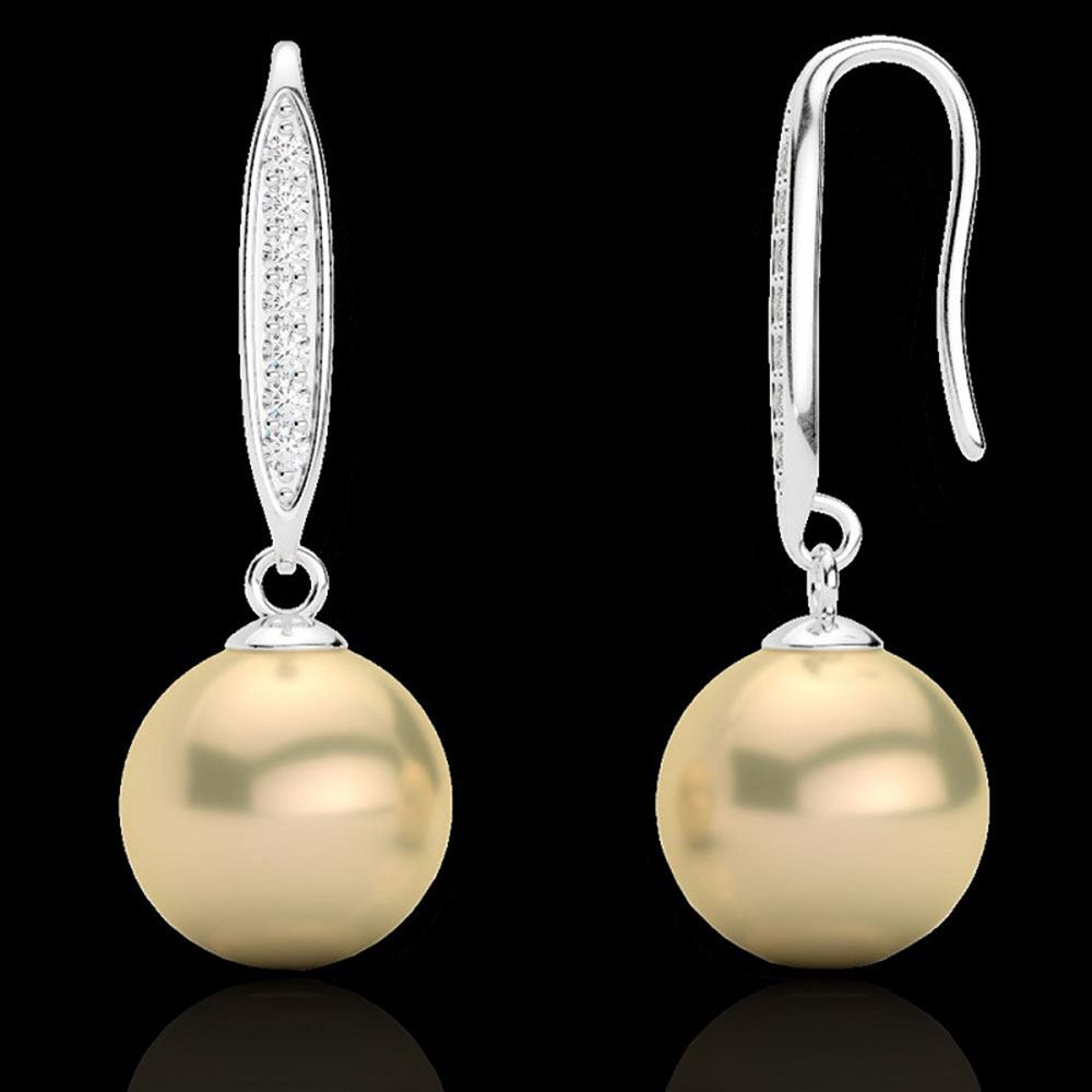 REF-25R9K - SKU: 22632 ---- 0.18 ctw Micro Pave VS/SI Diamond with Pearl Earrings 18k White Gold