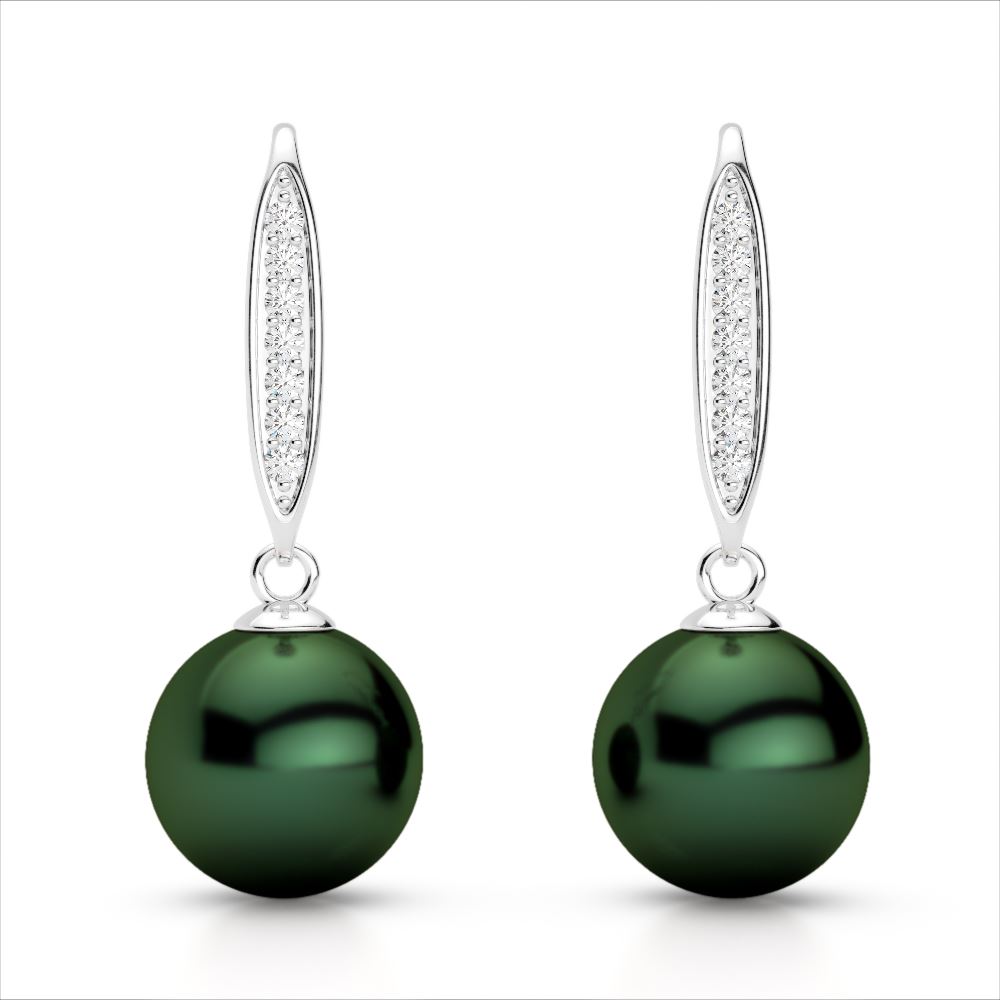 REF-25F9M - SKU: 22635 ---- 0.18 ctw Micro VS/SI Diamond & Peacock Pearl Earrings 18k White Gold