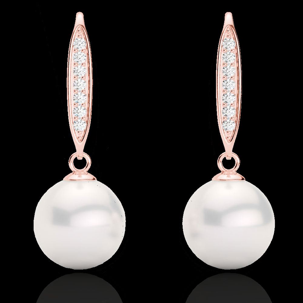 REF-23F2M - SKU: 22637 ---- 0.18 ctw Micro VS/SI Diamond & Pearl Designer Earrings 14k Rose Gold