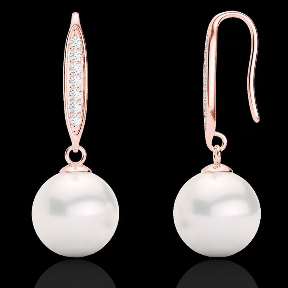 REF-23F2M - SKU: 22637 ---- 0.18 ctw Micro VS/SI Diamond & Pearl Designer Earrings 14k Rose Gold