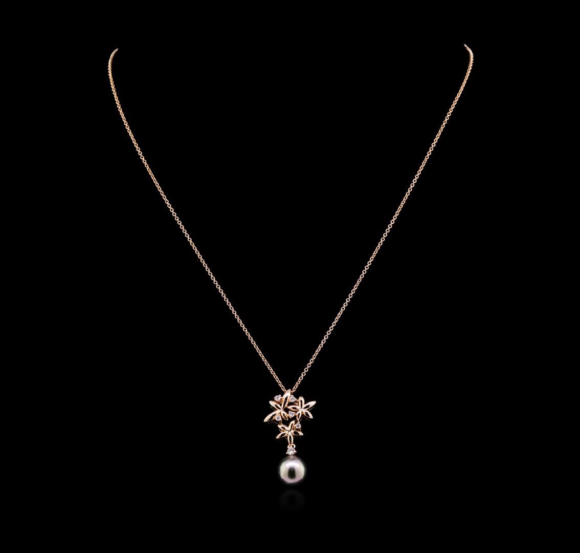 One pendant featuring: 14KT rose gold weighing 2.88 grams containing one pearl and side diamonds with a total weight of 0.18ct.