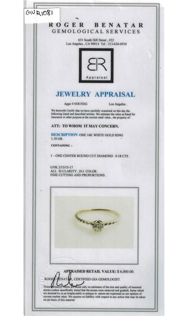 14KWHITE GOLD NATURAL DIAMOND RING:1.39 GRAMS/DIAMOND:0.18CT//#GVR1081