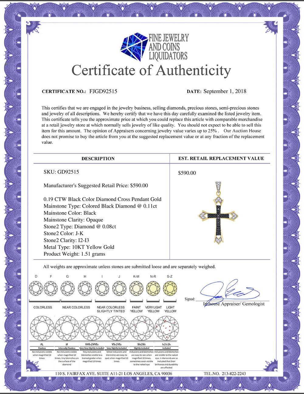 REF-14M9H- SKU: GD92515 ---- 0.19 CTW Black Color Diamond Cross Pendant 10KT Yellow Gold