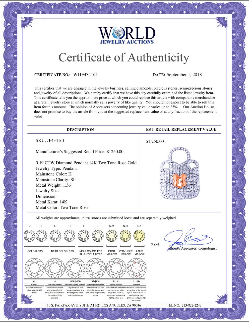 REF-14Y8X - JF434161 ---- 0.19 CTW White Round Diamond Pendant 14K Two Tone Rose Gold