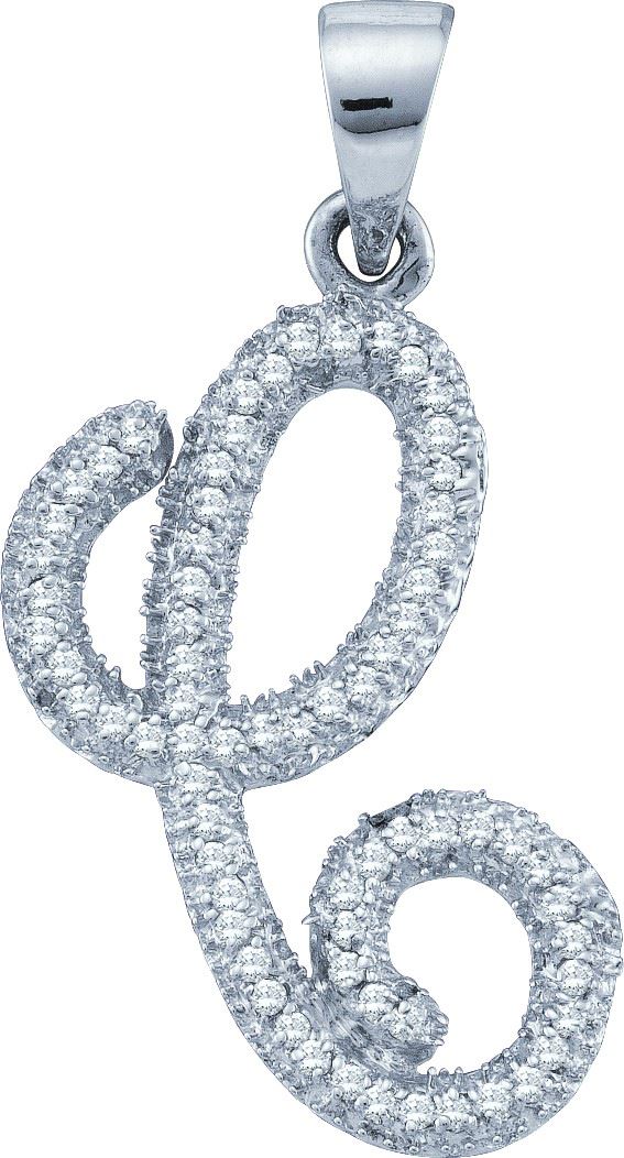 REF-16X2F ---- 0.19 CTW Natural Diamond Cursive Letter C Pendant 10K White Gold - SKU: GD49775
