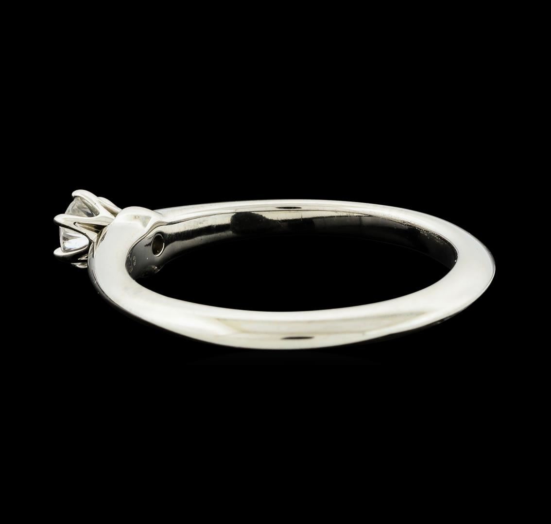 One electronically tested platinum lady's cast wedding ring with a cathedral solitaire with a bright polish finish. The featured lady's ring has a knife-edge shank measuring 1.85 millimeters wide. Trademark is Tiffany & Co. Identified with markings of 'PT 950'. Condition is new, good workmanship. Containing: One prong set round brilliant cut diamond, measuring 3.58 - 3.54 x 2.21mm (depth est.) , 9.00.%. GTCF approximate weight of 0.19ct. Graded in the setting. Clarity VS-1. Color: G Cut Ideal. Total Weight of Diamonds 0.19ct.. Total Weight of Ring 3.80gm. GAS Appraised at $1,335.00.