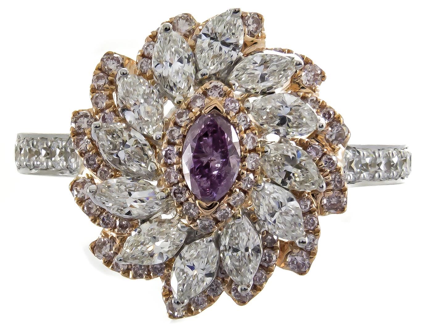 One ring featuring: 18KT Two-Tone Gold weighing 6.68 grams containing one marquise cut Fancy Pink Diamond with a total weight of 0.19 ct and diamonds weighing a total of 1.40 ctw. GIA Appraised.