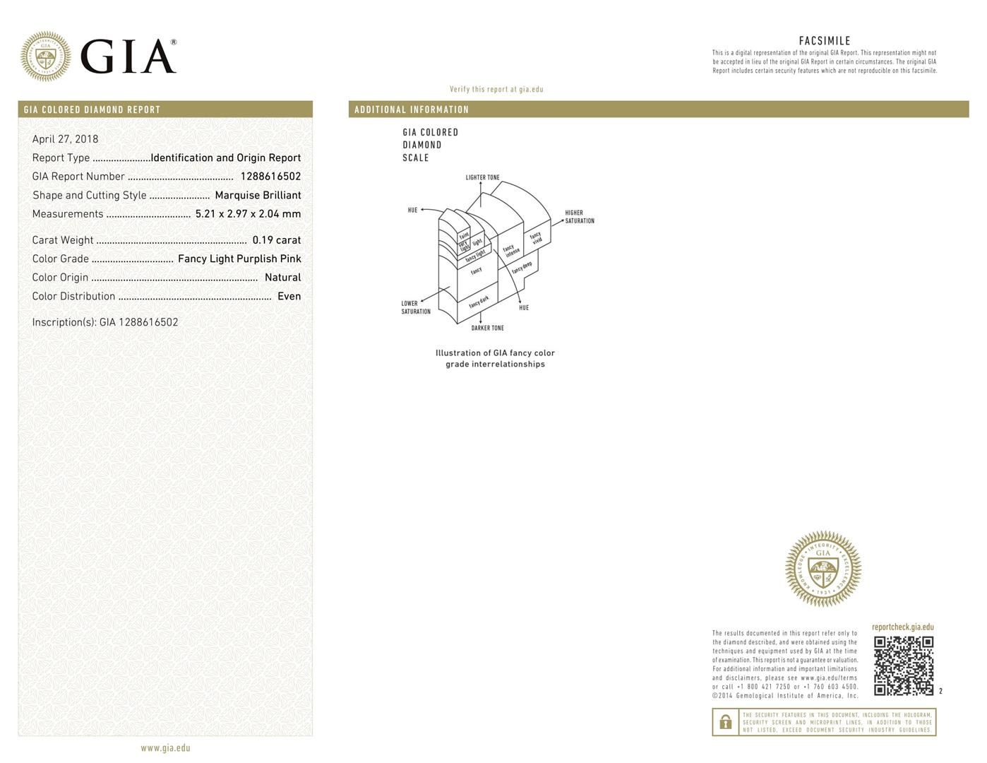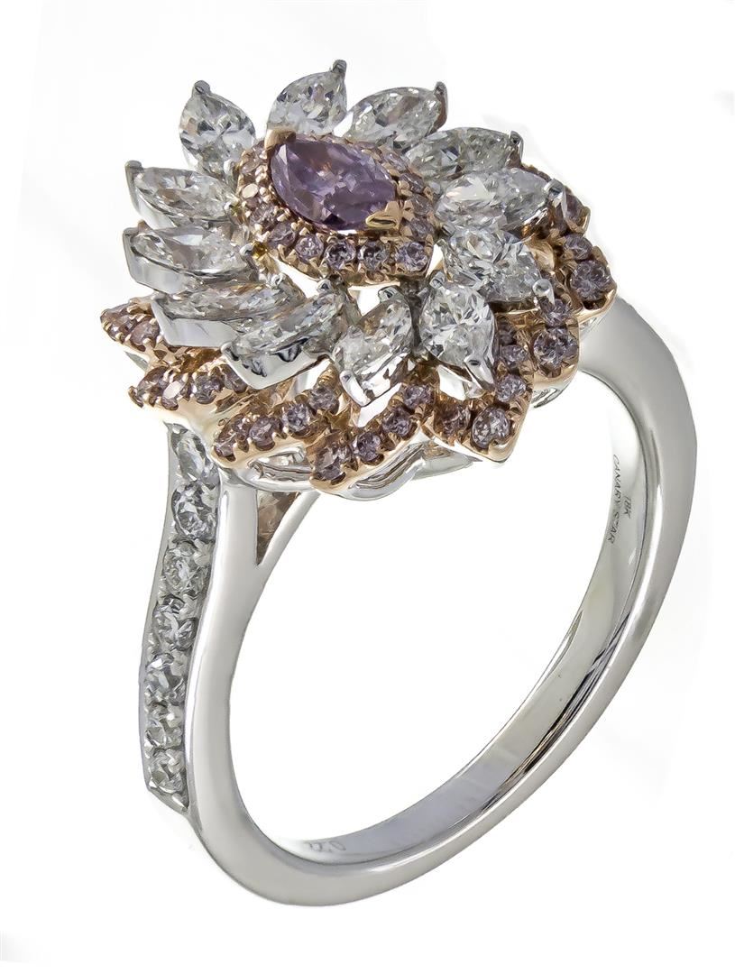 One ring featuring: 18KT Two-Tone Gold weighing 6.68 grams containing one marquise cut Fancy Pink Diamond with a total weight of 0.19 ct and diamonds weighing a total of 1.40 ctw. GIA Appraised.