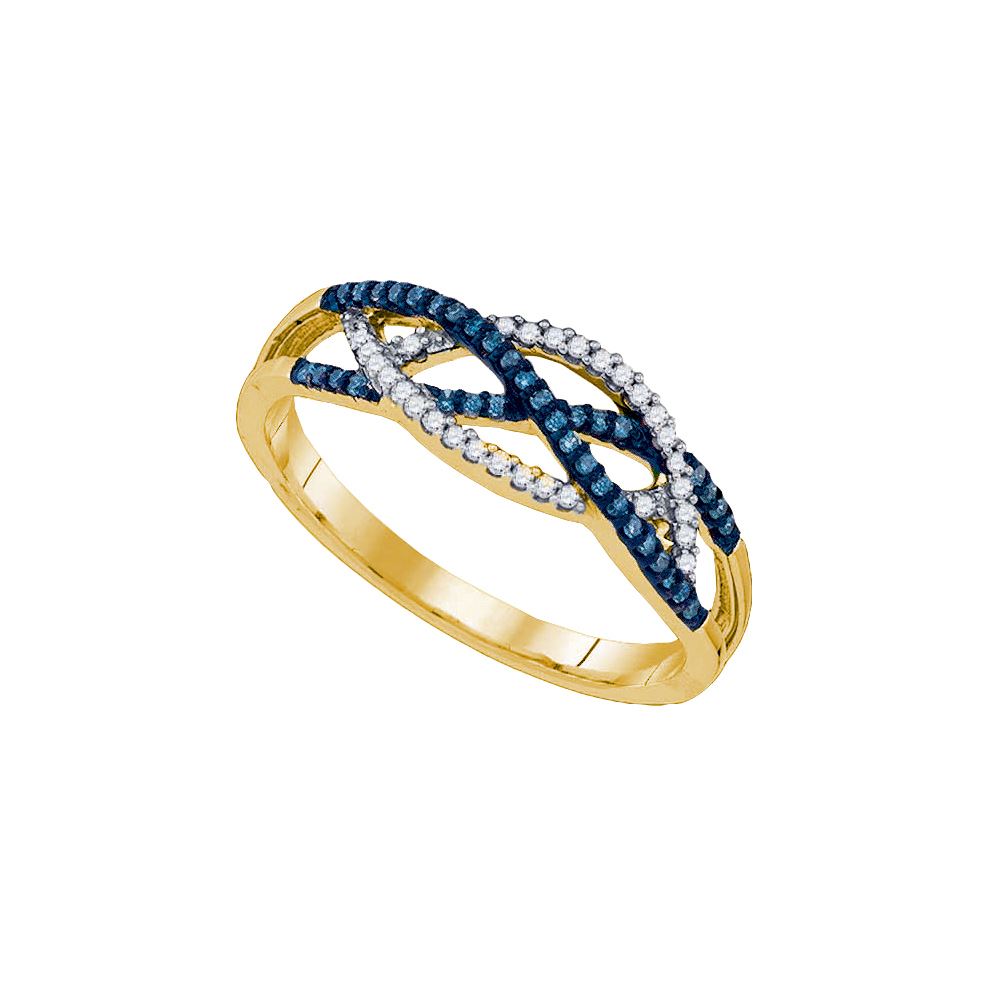 REF-29X9F ---- 0.2 CTW Blue Colored Diamond Crossover Band 10K Yellow Gold - SKU: GD80358