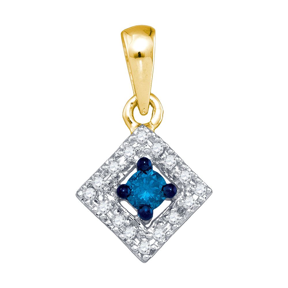 REF-19N9Y ---- 0.2 CTW Blue Colored Diamond Square Pendant 10K Yellow Gold - SKU: GD75856